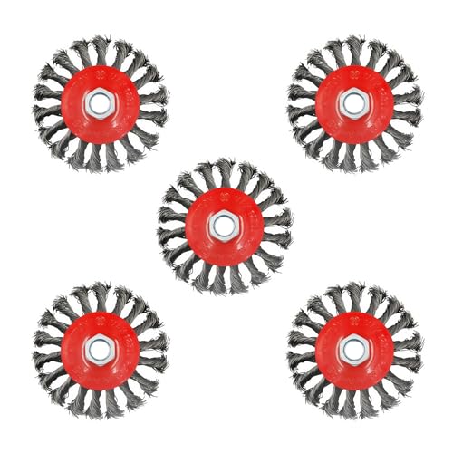 AUPREX 5-pack 10 cm vridknuten tråd hjulborste för vinkelslip med 5/8 tum-11 gängad berså – 0,02 tum kolståltråd för kraftig konditionering för olika metaller