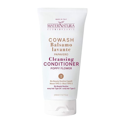 Maternatura, Cowash vallmoblomhår, tvättbalsam, rengöring och konditionering, ekologisk skönhetsrutin vågigt och lockigt hår, tillverkad i Italien, 200 ml