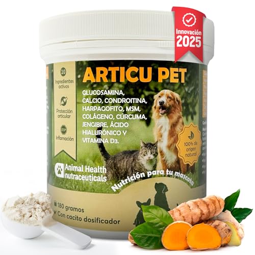 Articu Husdjur för hundar och katter - Ben- och ledtillskott med glukosamin, kondroitin, MSM och kollagen - Näringstillskott för små, medelstora och stora raser - 180 g