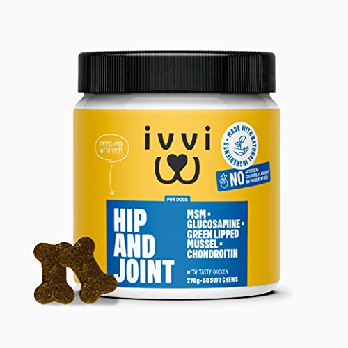 ivvi | Höft & led - högkoncentrerade ledtabletter för hundar som godis med grönläppad musselhund, glukosamin, kondroitin & MSM - 60 läckra snacks (270g) med kyckling