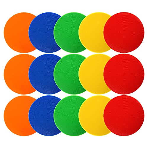 Okllen 15-pack poly vinylprickmarkörer, 23 cm golvprickar halkfri gummimagilitetprickar, platta koner cirklar för träning, träningsborrar, gym, fotboll, basket, 5 färger