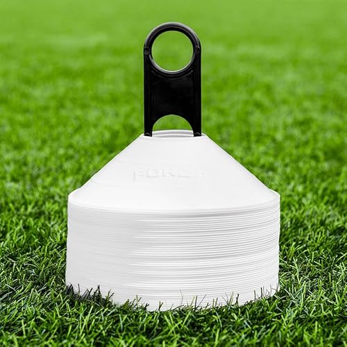 FORZA Träning Markeringskoner [50-pack] | 9 Färger | Premium Koner & Ställ | Multi-Sport – Fotboll, Rugby, Netball | Träningsutrustning (Vit)