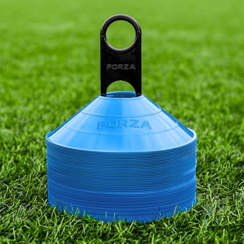 FORZA Träning Markeringskoner [50-pack] | 9 Färger | Premium Koner & Ställ | Multi-Sport – Fotboll, Rugby, Netball | Träningsutrustning (Himmelsblå)