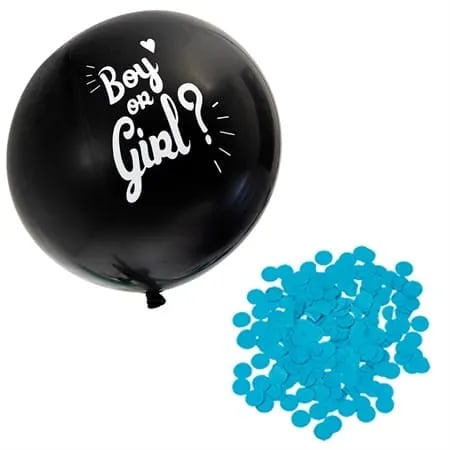 Svart Gender Reveal Ballong med Konfetti - 40 cm