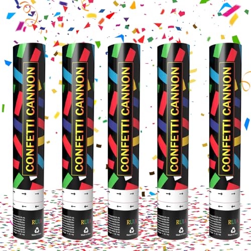 Biologiskt nedbrytbara konfettikanoner stora, set med 5 partypoppers flerfärgad konfetti, för bröllop, fester, babyshower, jul, födelsedagsfester - 30 cm