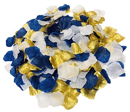 Blandade vita och mörkblå och guld konstgjorda blommor silke rosenblad 900 st blomflicka spridda kronblad för bröllop gång bordsuppsatser konfetti festdekoration brud (vit, kungsblå, guld)