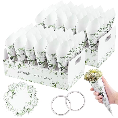 VorHOT Konfetti bröllop koner, 60 stycken konfettihållare med 2 konfettihållare i kraftpapper, konfettikoner för konfetti, kronblad, bröllop, festdekoration, blad