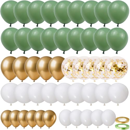 EMITUOFO 70 Stycken Ballonger Olivgrön, Salviagröna Heliumballonger Guld, Vit, Gröna, Gyllene Metallic-Konfetti Ballonger för Bröllop, Baby Shower, Födelsedag, Examen, Festdekoration