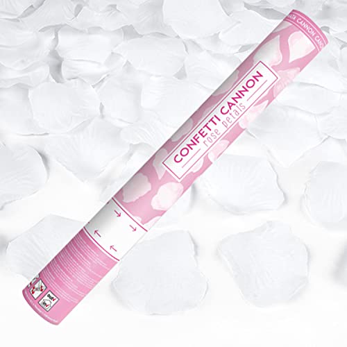 Vita kronblad konfetti skjutrör, kanon sparare rosa blomma komprimerad för bröllop, examen, nyår, fest, alla hjärtans dag - 40 cm