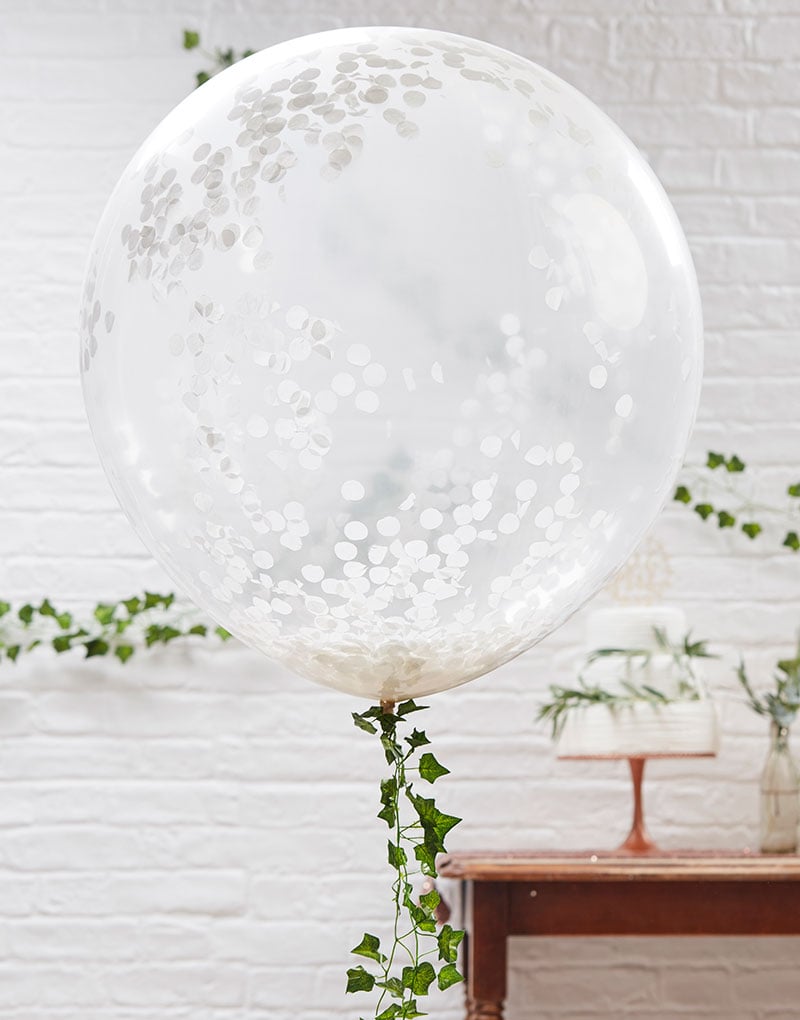3 stk 90 cm Gigantiska Ballonger med Vit Konfetti - Botaniskt Bröllop