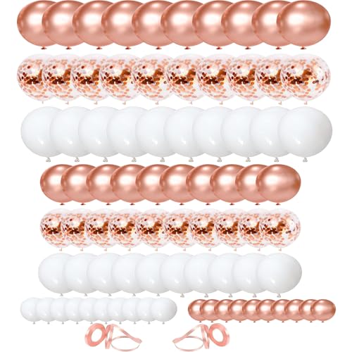 ZHOUHON 80 Stycken Roséguld Konfetti och Vita Ballonger, Dekoration för Bröllopsdekoration Födelsedag Babyparty Bröllop Festdekoration