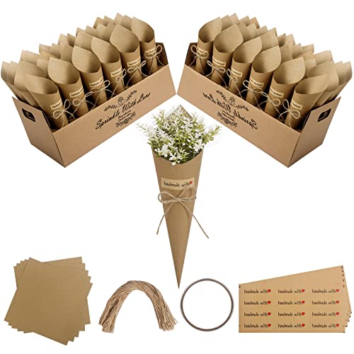 Riskottar för bröllop, 60 st kraftpapper med hållare, vintage kottar för kronblad och konfetti, dekoration och presentförpackningar