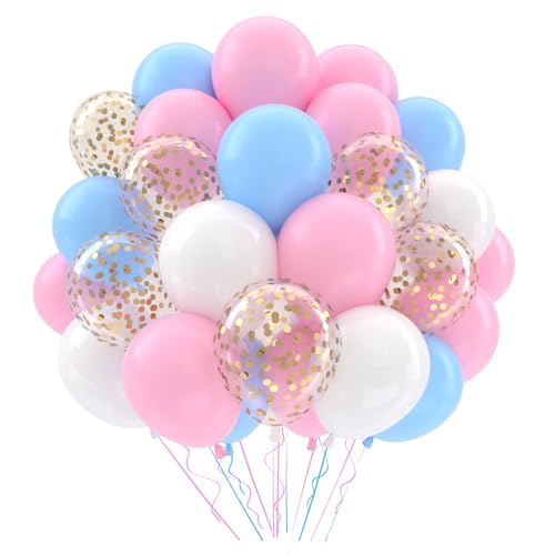 Ballonger, rosa och blå, för fester som avslöjar kön (gender reveal), partydekoration, 52 stycken, konfetti-heliumballonger, dekoration för pojke eller flicka, för bröllop, födelsedag och baby shower