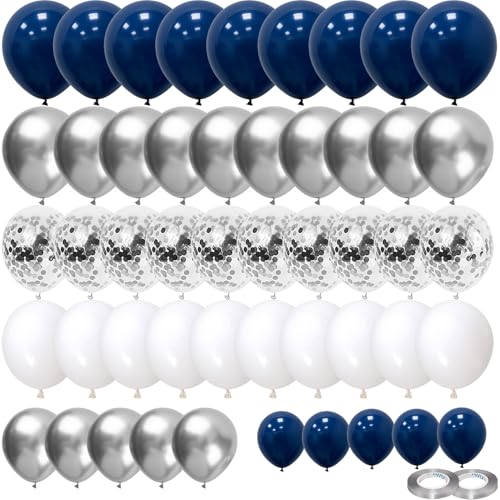 70 Stycken Ballonger Set, Marinblå, Silver, Vit - Metallic Latexballonger, Konfetti, Heliumballonger för Bröllop, Födelsedagsfest Dekoration