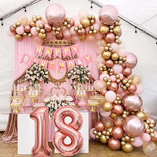 DUGEHO 18 år gammal dekoration flicka roséguld,ballongbåge kit ballonggirlang latex kit, konfetti ballonger används dekoration för bröllop födelsedagsfest dop