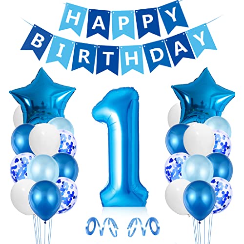 1 år gammal pojke födelsedagsballong, 1 år gammal dekoration blå, födelsedagsballonger nummer 1, ballonger konfetti latex födelsedagstillbehör dop festdekoration