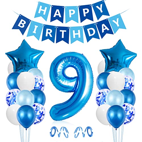 9 år gammal pojke födelsedagsballong, 9 år gammal dekoration blå, födelsedagsballonger nummer 9, ballonger konfetti latex födelsedagstillbehör dop festdekoration
