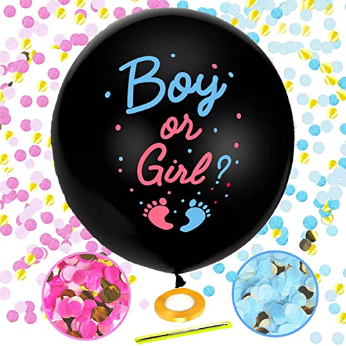 HCRXVV Könsavslöjande partyballong, 96 cm, pojke eller flicka, konfettikanon, xxl, svart, ballong med rosa och blå konfetti för kön, förkunna, fest, baby, babyshower, dekoration