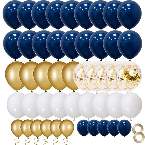 Bluelves Ballonger blå guld vit, 60 stycken heliumballonger mörkblå vit, guld metalliska ballonger latexballonger marinblå med konfetti för ballonger girlang födelsedag bröllop dekoration