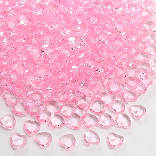 YIEUR 600 stycken rosa hjärtan diamant konfetti dekoration, 12 mm glitter dekorativa stenar hjärtan akryl, spridda dekoration kristaller konfetti diamanter plast bröllop bordsdekoration gåva dop från