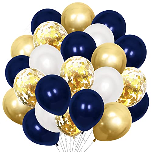 70 Marinblå, Metallic Guld och Vita Ballonger - Helium Latex Ballong Med Guld Konfetti för Födelsedag, Bröllop, Babyshower Party Dekoration
