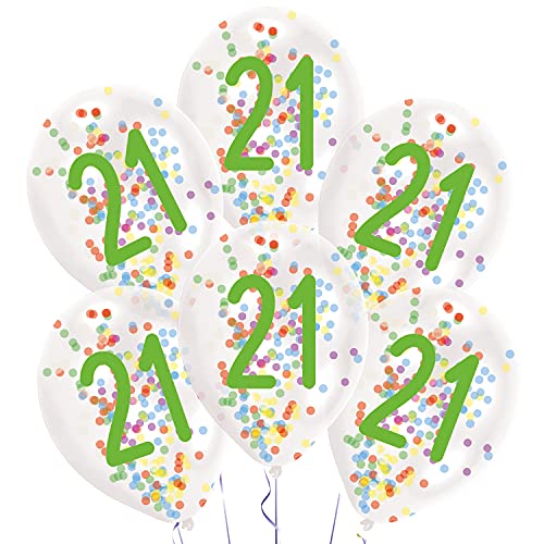 Amscan 9909838 – Latexballonger konfetti, nummer 21, 6 stycken, ca 27,5 cm, med fyllning, nummerballonger, födelsedag, dekoration, gåva, vuxen