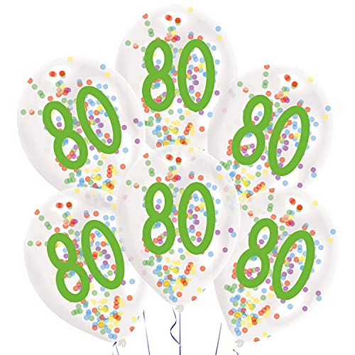 Amscan 9909844 – Latexballonger konfetti, nummer 80, 6 stycken, ca 27,5 cm, med fyllning, nummerballonger, födelsedag, dekoration, gåva, vuxen