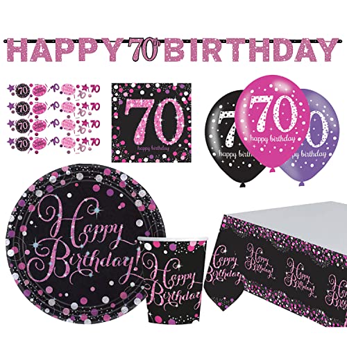 Amscan 9050 0413-66 – Partyset Happy Birthday 70, 41 delar, tallrikar, muggar, servetter, ballonger, konfetti, bordsduk, festkedja, engångsporslin och dekoration, födelsedag, fest