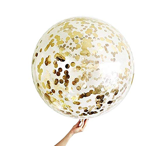 4 Guld Konfetti Ballonger XXL Gigantisk Genomskinlig Ballong med Metallisk Konfetti, Dekoration för Nyår, Födelsedag och Graduering Fest