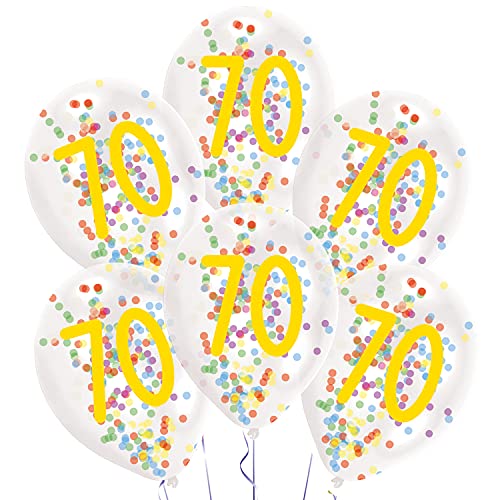 Amscan 9909843 – Latexballonger konfetti, nummer 70, 6 stycken, ca 27,5 cm, med fyllning, nummerballonger, födelsedag, dekoration, gåva, vuxen