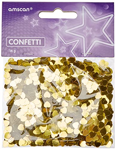 Amscan INT37009-19 – konfetti hjärtan, 14 g, guld, spridd dekoration, bordsdekoration, födelsedag, bröllop