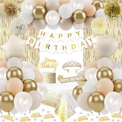 Födelsedagsballonger, vitguld, ballongbåge för födelsedag, grattis på födelsedagen dekoration, fest ballonger, grattis på födelsedagen krans konfetti latexballonger för flickor och kvinnor, 1, 2, 3,
