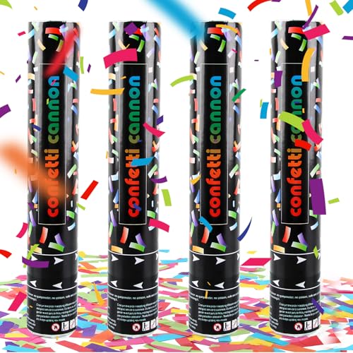 dellyy konfettikanon x 4, konfettikanon biologiskt nedbrytbar, konfettikanoner bröllop, festpopper, konfettikanon xxl för bröllop, fest, födelsedag, nyårsafton (färgglad)