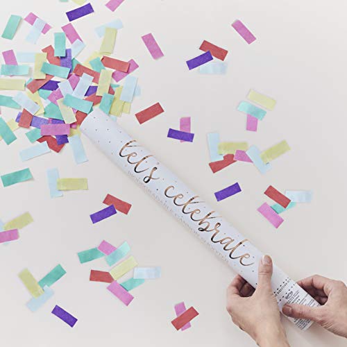 Samtalande bord 1 x serpentiner och konfettikanon, dubbelsidig för födelsedagar bröllop, regnbågsfärgad eko papper festkastare pappersskjutare biologiskt nedbrytbar plastfri 22 cm