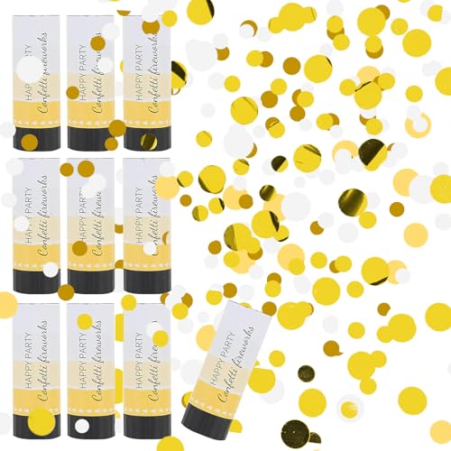 Konfettikanon, ACTOYS 10 stycken handhållna konfettipoppers, konfettikanon, biologiskt nedbrytbar, konfettiskytt, konfettikanon, guld, för bröllop, födelsedag, babyparty, fest