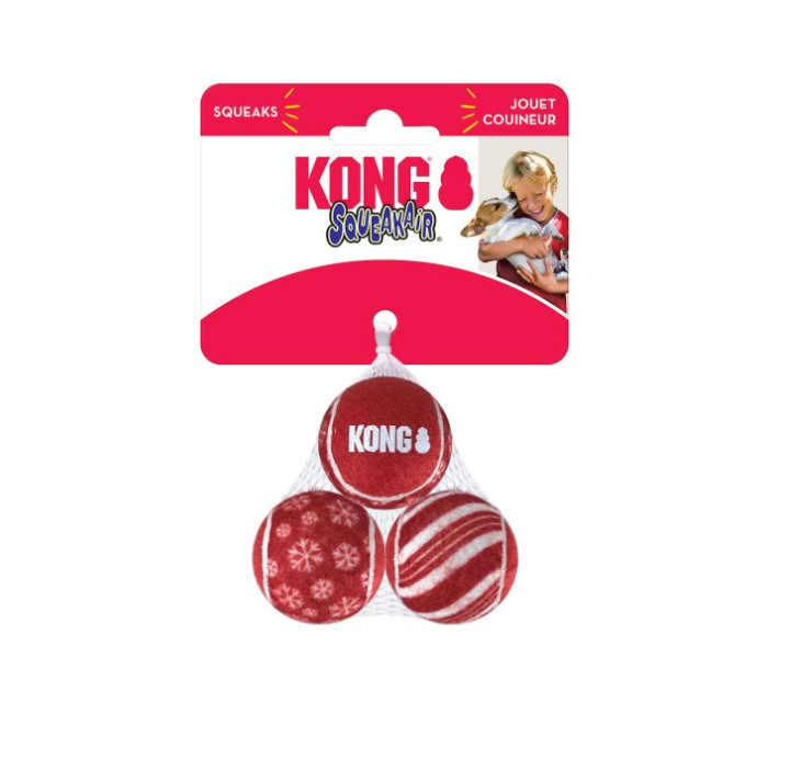 KONG Julleksak SqueakAir Bollar Röd 3-Pack Medium