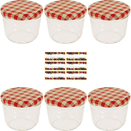 Viva Haushaltswaren #12895# – 6 x små syltburkar/konserveringsburk 230 ml med lock, Twist-off glas-set i fall – kan användas som engångsburkar, förvaringsburkar etc. (inklusive etiketteringsetiketter)