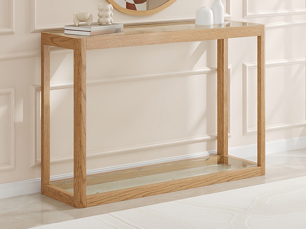 Konsol i härdat glas och ek - Transparent och Naturlig - ZUNARIL