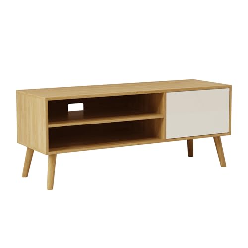 VASAGLE TV-enhet, 120 cm brett TV-stativ, för TV-apparater upp till 55 tum, nöjescentrum, modern TV-konsol för vardagsrum, sovrum, lounge, naturlig ek och gräddvit LTV120N01