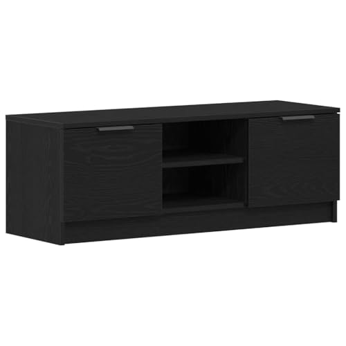 vidaXL Modern svart ekunderhållningsenhet med justerbara hyllor | Snygg mediaskåp möbler för vardagsrum MDF-konstruktion inomhus 100 cm längd konsol TV-bänk hyllcentrum trä