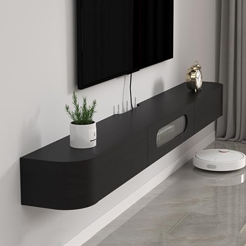 XRRJFYH 160 cm Flytande TV Bänk Mediakonsol i Trä med Lådor Underhållningscenter TV Skåp Väggmonterad TV Konsol (Color : Black)