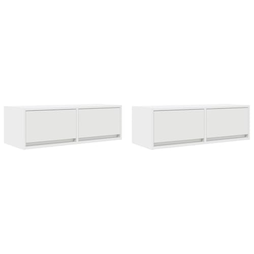 vidaXL TV-bänkar 2 st vit 80x31x25,5 cm konstruerat trä, TV-bänk, hifi-skåp, underhållningscenter, TV-sideboard, mediaskåp, TV-konsol, TV-skåp
