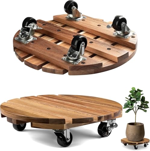 BURNTOP Växt Caddy trä växt står utomhus med hjul broms trädgård kruka står hem inomhus och utomhus växt dekoration fästen slitstark rullande växt movers konsol växt docka (2-pack)