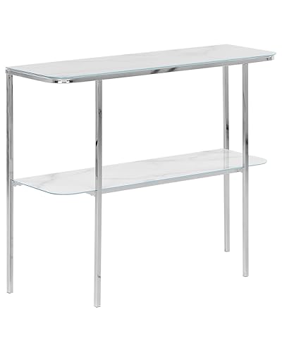 Rektangulärt Konsolbord Marmoreffekt Vit Bordsskiva Silver Metallben Glamorös Calvert
