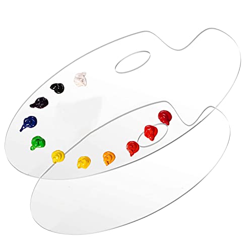Darenyi 2 stycken blandade paletter blandningspaletter för oljefärger akryl transparent oval konst palett med fingerhål för gör-det-själv konst målning