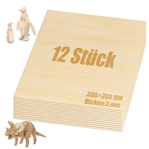 LOLYSIC 12 stycken 300 x 300 x 3 mm balsaplywoodskiva, pysselträplattor för pyssel, perfekt för laserprojekt, gör-det-själv-modell, konst och hantverk, målning