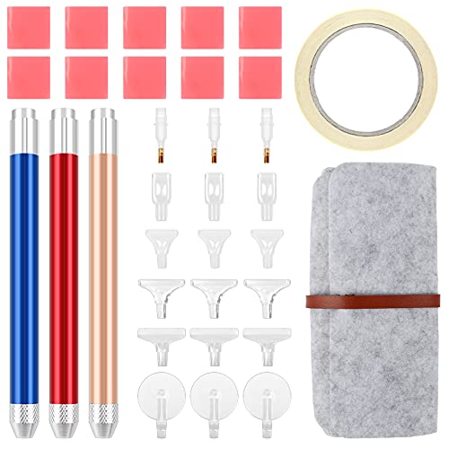 Haisheng 3PCS Point Drill Diamond Painting Kit Med 15PCS Penhuvuden, Dubbelsidig Tejp, Pennväska, 3PC Rullar För Konst DIY Målning Craft (3 Färger)