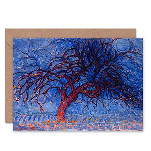 Wee Blue Coo PIET MONDRIAN 1908 ÄVNING Röd TREE Målning Konst Hälsningskort
