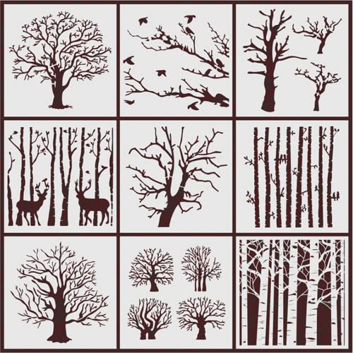 YUNYANZE 9 st ritning målning konst stencil träd schabloner set återanvändbar målning mall för målning hantverk vägg gör-det-själv natur heminredning träskylt