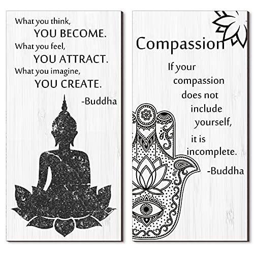 Buddha citat 2 delar inspirerande citat väggdekor zen meditation trä hängande, meditation Buddha [vägg] [Konst] för hem vardagsrum yoga [dekor] s (medkänsla)